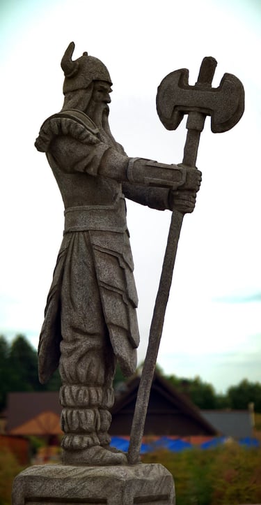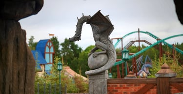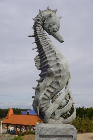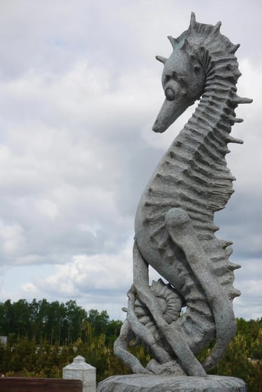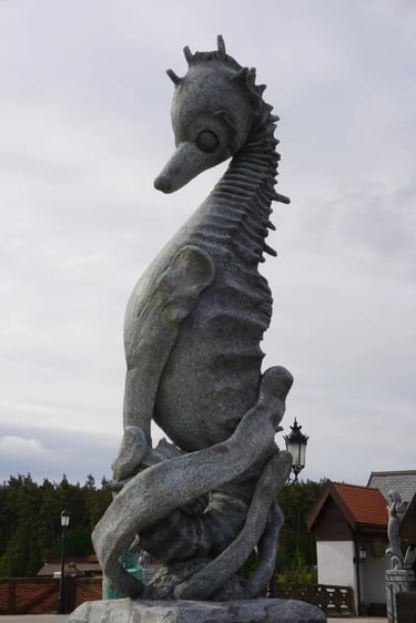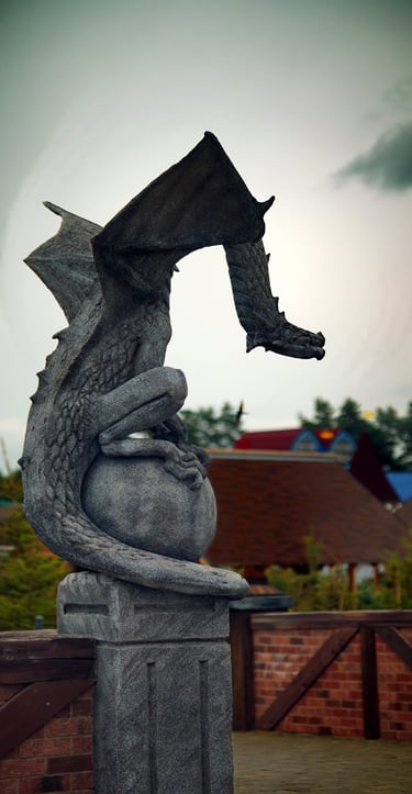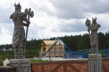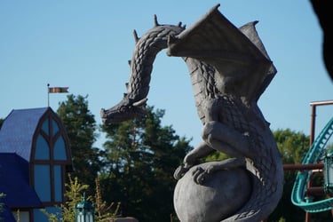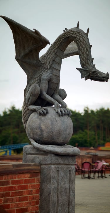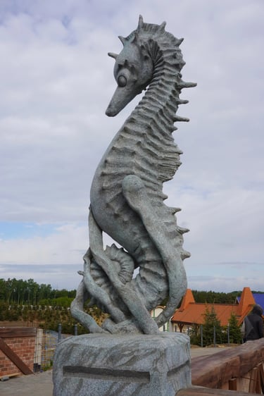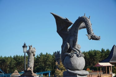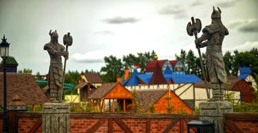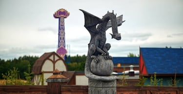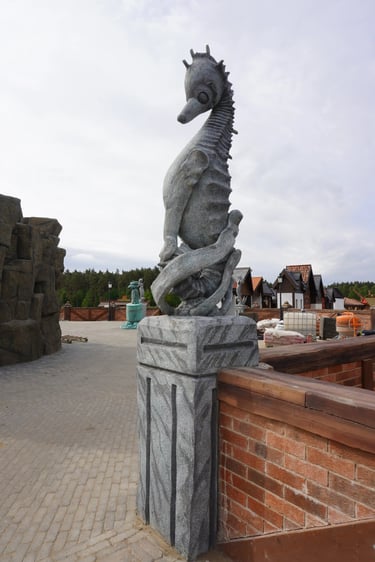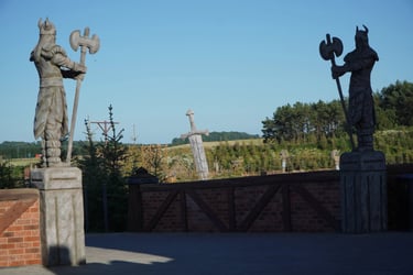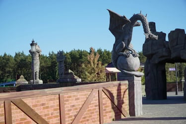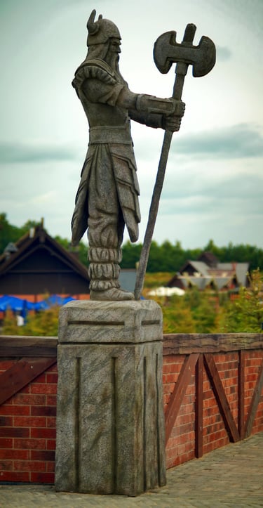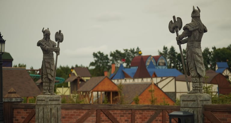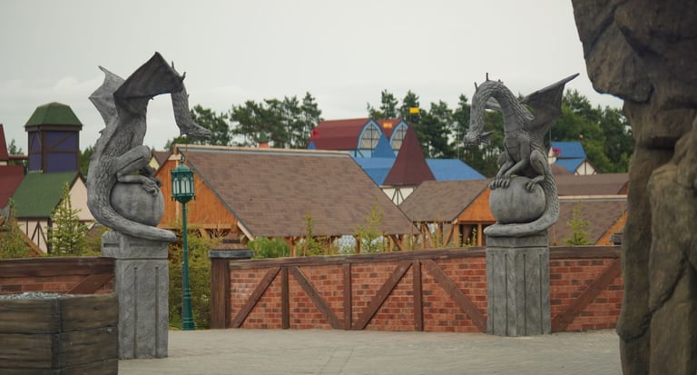 Eight monumental sculptures stand in pairs at each pathway, guiding visitors into the worlds of Vikings, Mermaids, Dragons, and the fantasy realm of Baltambrya.