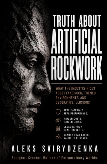A professional book by Aleks Svirydzenka about artificial rockwork, hidden failures, real quality, and how lasting projects are truly built.