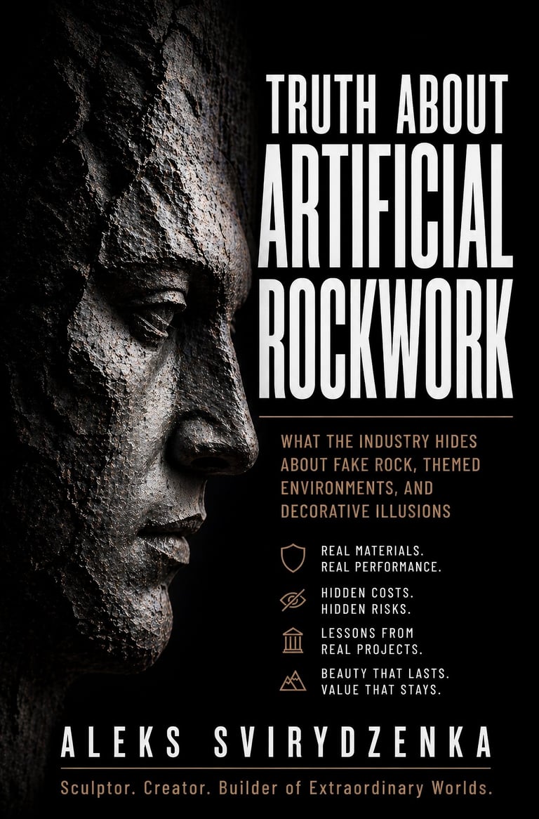 This book exposes the difference between visual illusion and real construction quality in artificial rockwork, themed environments, zoo habitats, public spaces, and commercial decorative projects.